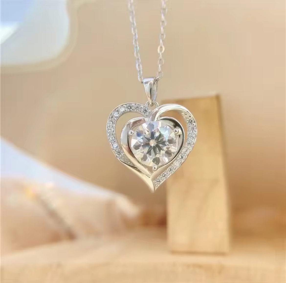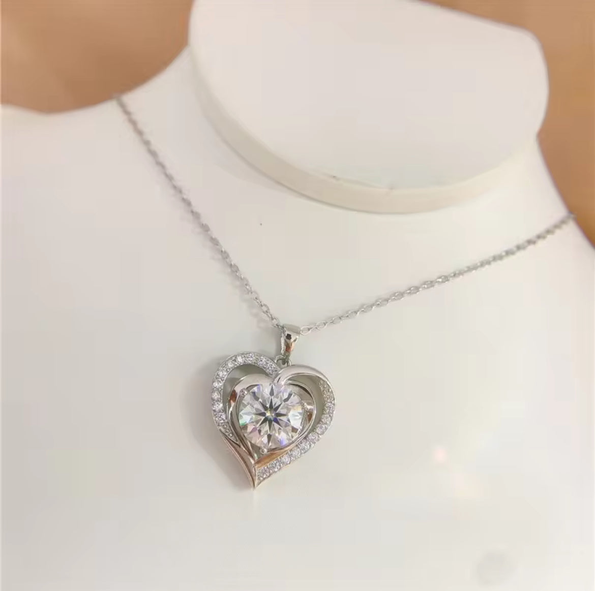 - Stone: 1 Carat Heart-Cut VVS Moissanite (diamond tester pass)