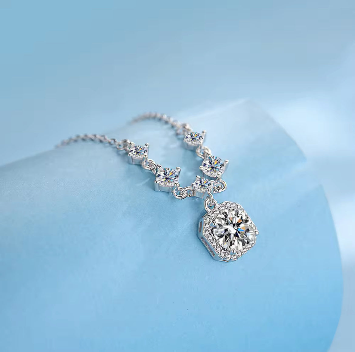 Elevate your elegance with Lunar Atelier’s “Éclat” Pendant Necklace, featuring a 1 Carat VVS D Color moissanite in a sleek square design. Handcrafted in S925 sterling silver, this necklace is perfect for banquets, birthdays, or any occasion where understated luxury meets modern sophistication.