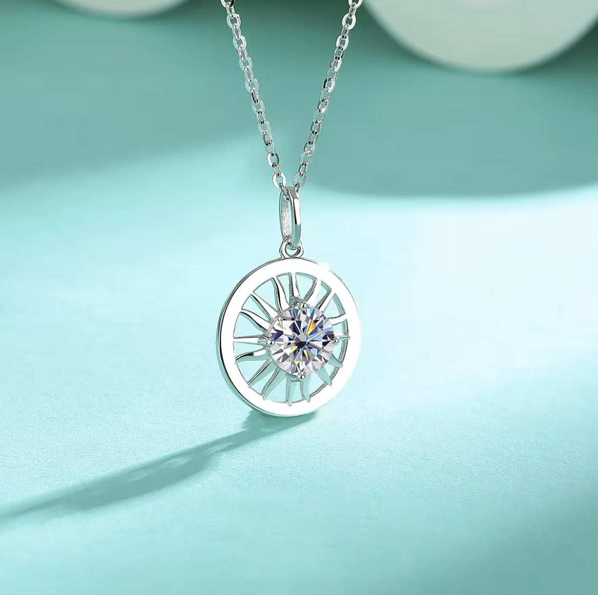 Bask in the glow of timeless elegance with Lunar Atelier’s “Solara” Pendant Necklace. Featuring a 1 Carat VVS moissanite stone at the center of a radiant sun-inspired design, this piece is meticulously crafted in S925 sterling silver to capture every ray of light. A statement of sophistication, it’s perfect for weddings, engagements, or adding a celestial touch to everyday style.